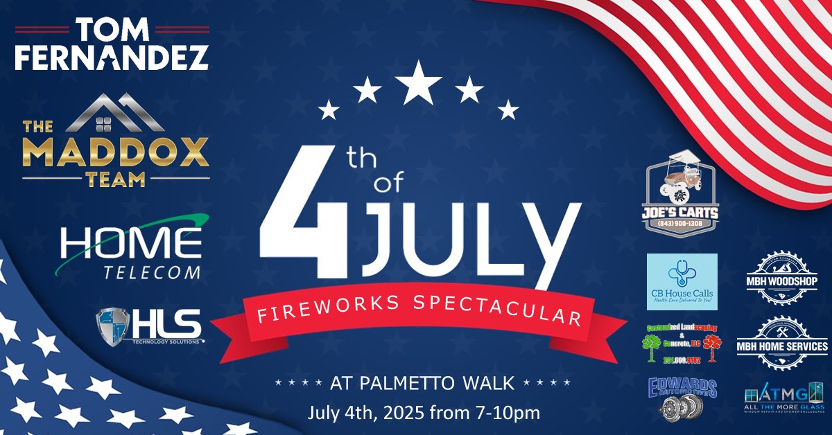 It’s almost time for the FREE 10th annual Cane Bay 4th of July Fireworks Spectacular at Palmetto Walk!!! The free event will be held at the Palmetto Walk pavilion on the 4th from 7-10pm. More details to come as we get closer to the date, but plan now to attend what will be the greatest show in the county.